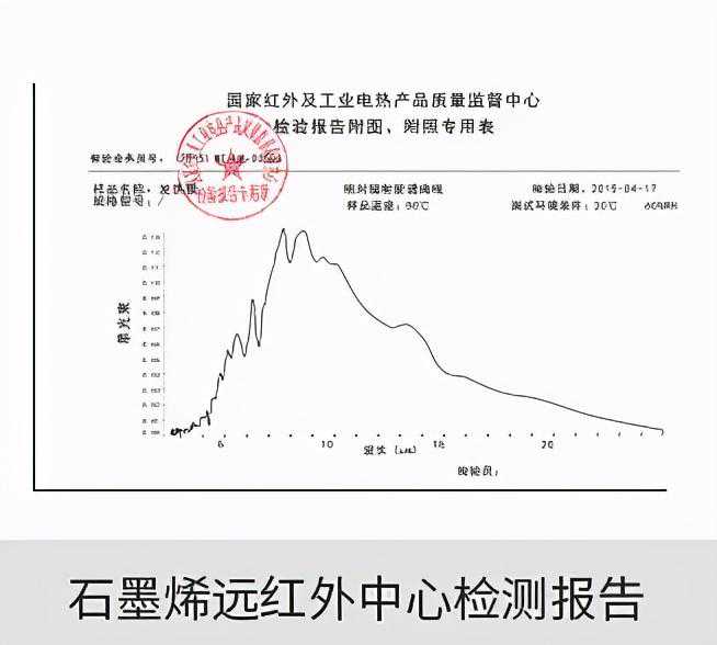 经国家远红外中心检测,当石墨烯发热时会释放与人体相同波长范围的远红外光波,被称为“生命光波”。人体释放的远红外光波的范围主要集中在6-14微米,当人体接受此波长范围的光波能量时,能很好的与身体内部细胞分子产生“共振”,可以改善血液循环,提高机体免疫力,调节精神状态,让人保持轻松舒适,从而起到健康养护效果。