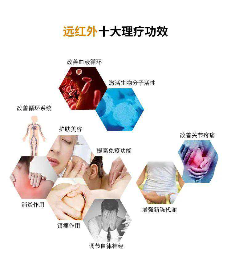 人本身也是一个远红外辐射源,发射5.6um-15um远红外线,当相近波长远红外线照射人体时,与身体中的细胞分子、原子间的水分子运动频率相一致时,可以引起共振效应。