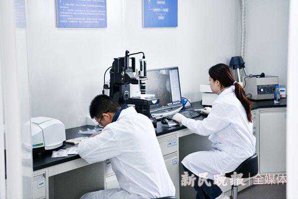 图说:应急分析实验室内,工作人员在分析挖掘出的土壤新民晚报记者孙中钦摄
