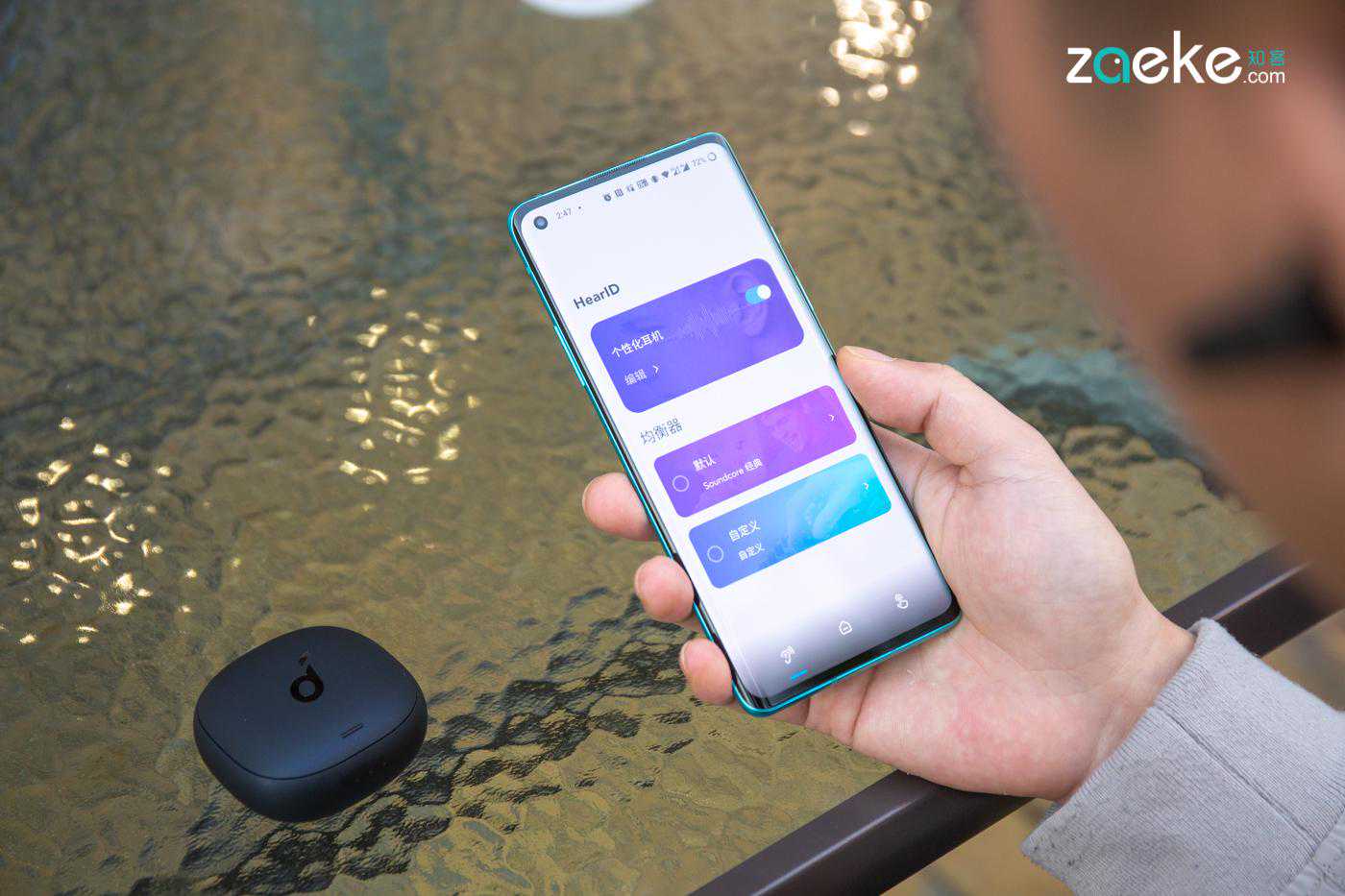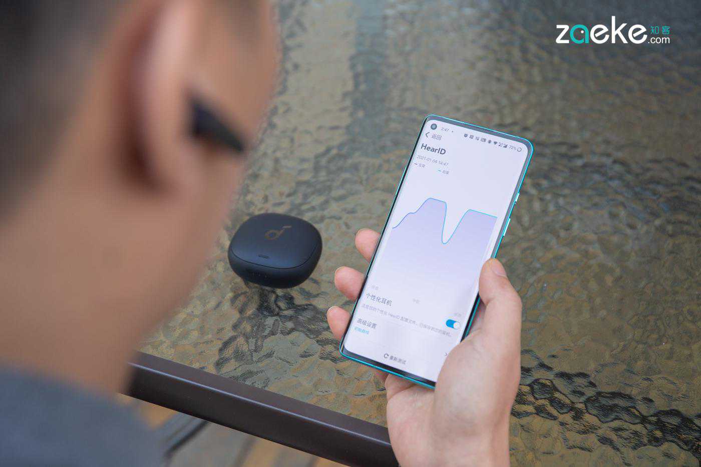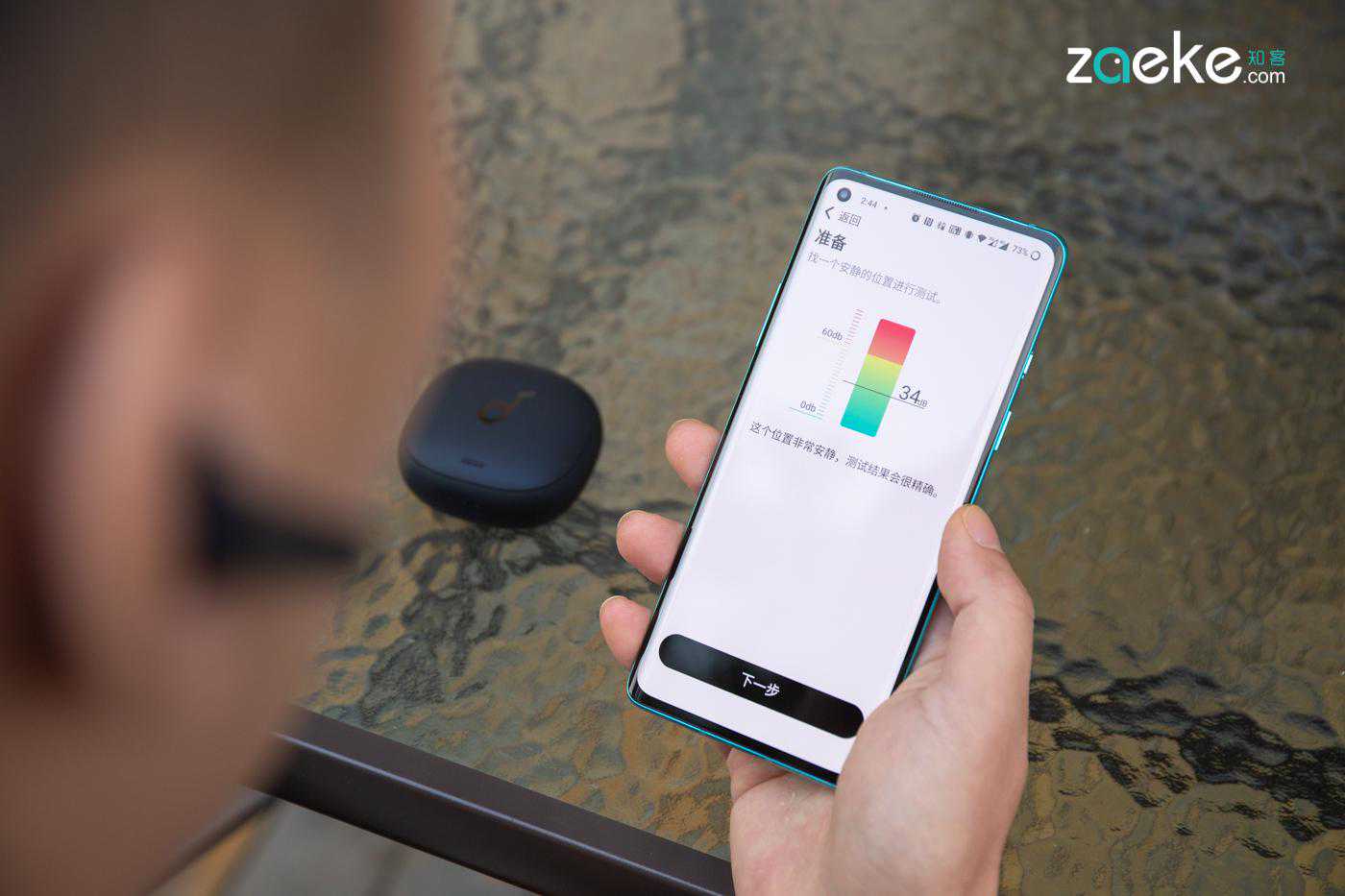 考虑到每个人对于中、高、低三频的敏感度不尽相同,声阔还专门为用户推出了,采用iOS和Android系统设备通过使用“Soundcore”APP亲自定制属于自己的专属音效,使用该功能前需要确保自己身处足够安静的地方,否则该测试无法顺利开展。