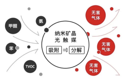 矿晶光触媒可以促进它们分解,变成二氧化碳和水。