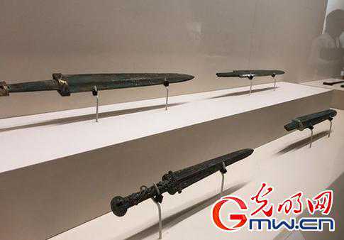 “中山内府”铜镬、鎏金鸳鸯铜戈、错金铁短剑、玉具剑、鎏金银狩猎纹铜当卢、错金银铜锯齿形器、错金银铜承弓器……林林总总的珍品讲述了西汉诸侯国从与中央分庭抗礼,到了在汉景帝、汉武帝时期权势不断衰落,最后“唯得衣食租税”的往事。