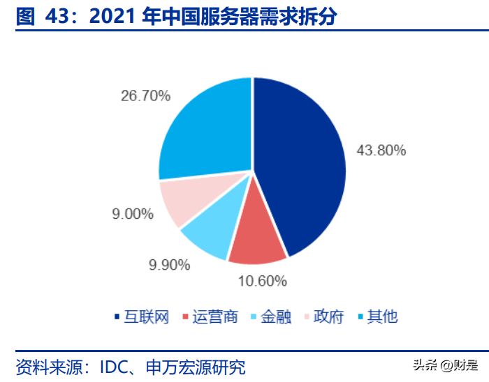 中国服务器需求领涨全球。近年来随着全球互联网、云计算、数据中心的快速发展,服务器的需求量不断增长,销售额和出货量也随之逐年递增。IDC的数据显示,2021年中国服务器市场销售额为1632亿元,同比增长15.9%,出货量为391.1万台,同比增长11.7%。中国服务器出货量占全球的约30%,年出货量同比增速持续高于全球增速。IDC预测,中国服务器市场规模在2025年可达463亿美元,服务器出货量可达529万台,出货量在2022至2025年期间保持8.85%的年化增长率。