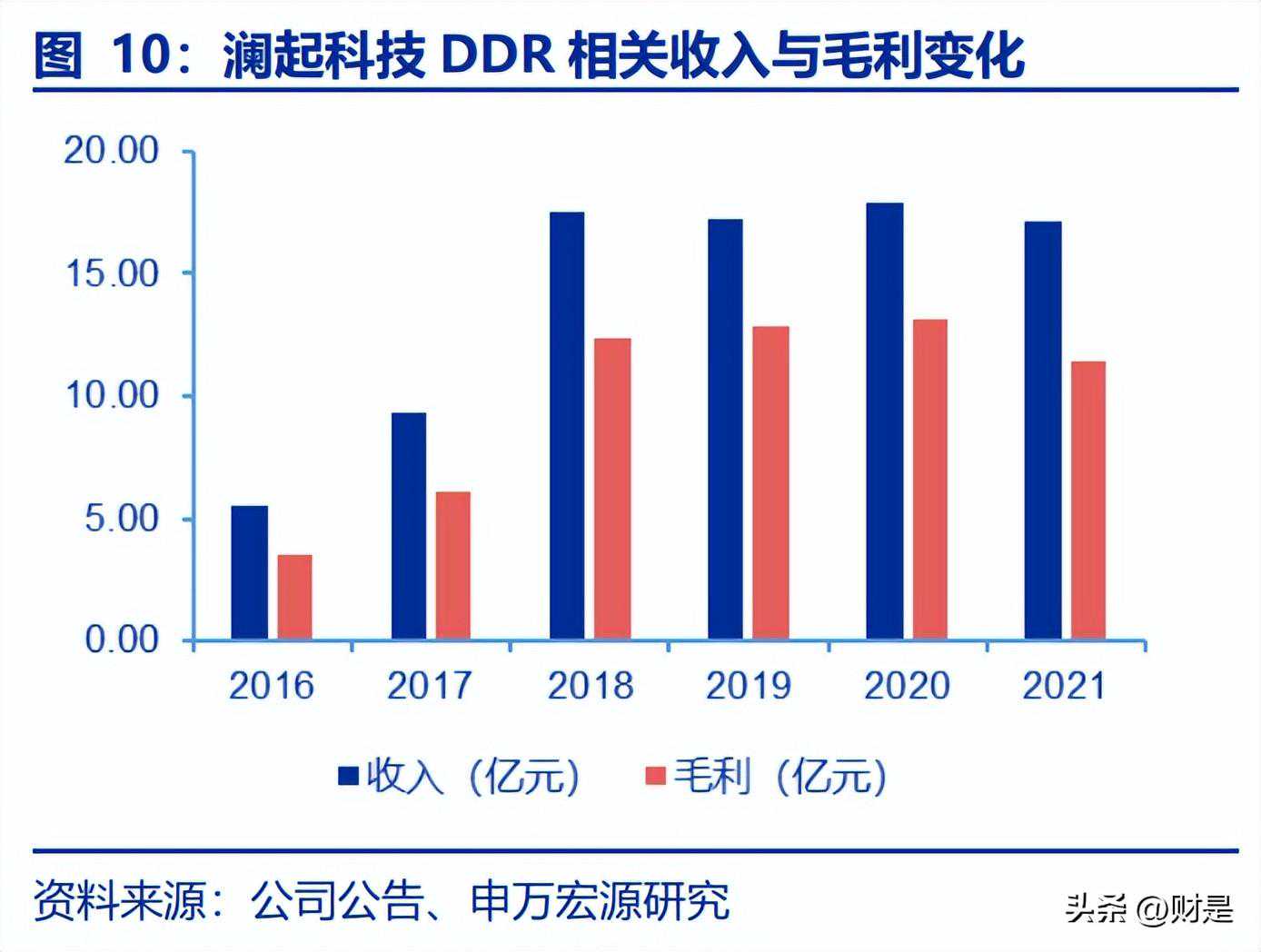 周期早期,公司净利润增速高于营收增速,21年由于DDR4进入迭代升级阶段,公司净利润有所下降。公司2016年—2020年营业收入与归母净利润的复合增速分别为21.21%和85.62%,净利润增速显著高于营收增速。这一段时期净利润的高速增长主要是因为DDR4产品子代至的升级,产品渗透率不断加深,使公司利润保持稳定增长。2021年公司归母净利润8.29亿元,较2020年下降2.75亿元,同比下降25%,主要原因是DDR5世代产品2021年四季度才开始量产,处在产品生命周期初期,同时DDR4产品已进入产品生命周期后期,产品的平均销售单价下降,公司内存接口芯片毛利明显下降(下降1.69亿元),同时公司加大了研发投入(增加约7000万元)。因此,可以认为公司净利润承压是短期状况,随着DDR5渗透率上升,公司净利润有望恢复快速增长。