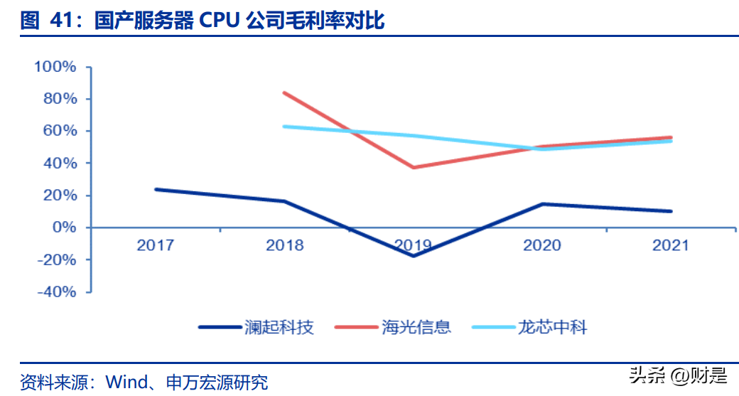 津逮服务器平台于2021年度过验证周期,实现业绩放量突破。公司津逮®服务器平台2017-2021年收入分别为0.08/0.09/0.16/0.30/8.45亿元。CPU是服务器的大脑,行业技术门槛和商业门槛都很高,产品验证周期长,客户及终端用户在决定大批量采购之前通常需要经过大量的验证、测试及一段时间的试用。公司于2019年5月实现第一批津逮®CPU量产,2020年实现对东方证券等下游客户的规模出货。目前,搭载津逮®CPU的服务器机型主要应用于金融、能源、政务、交通、数据中心及智慧城市等下游行业。经过两年市场推广和客户培育,2021年实现8.45亿销售收入,较上年度增长27.5倍,成为公司业绩收入的重要增长点。