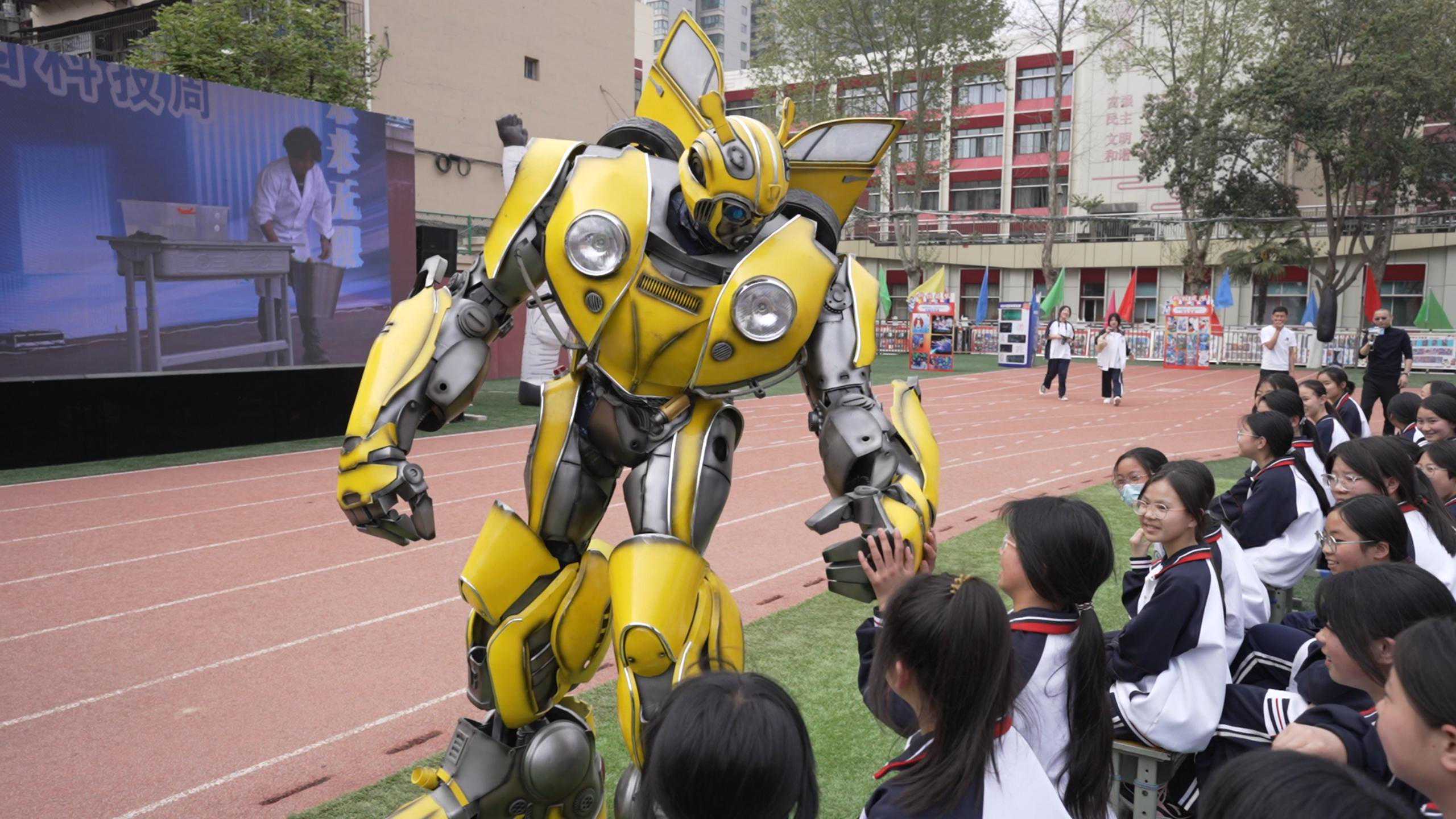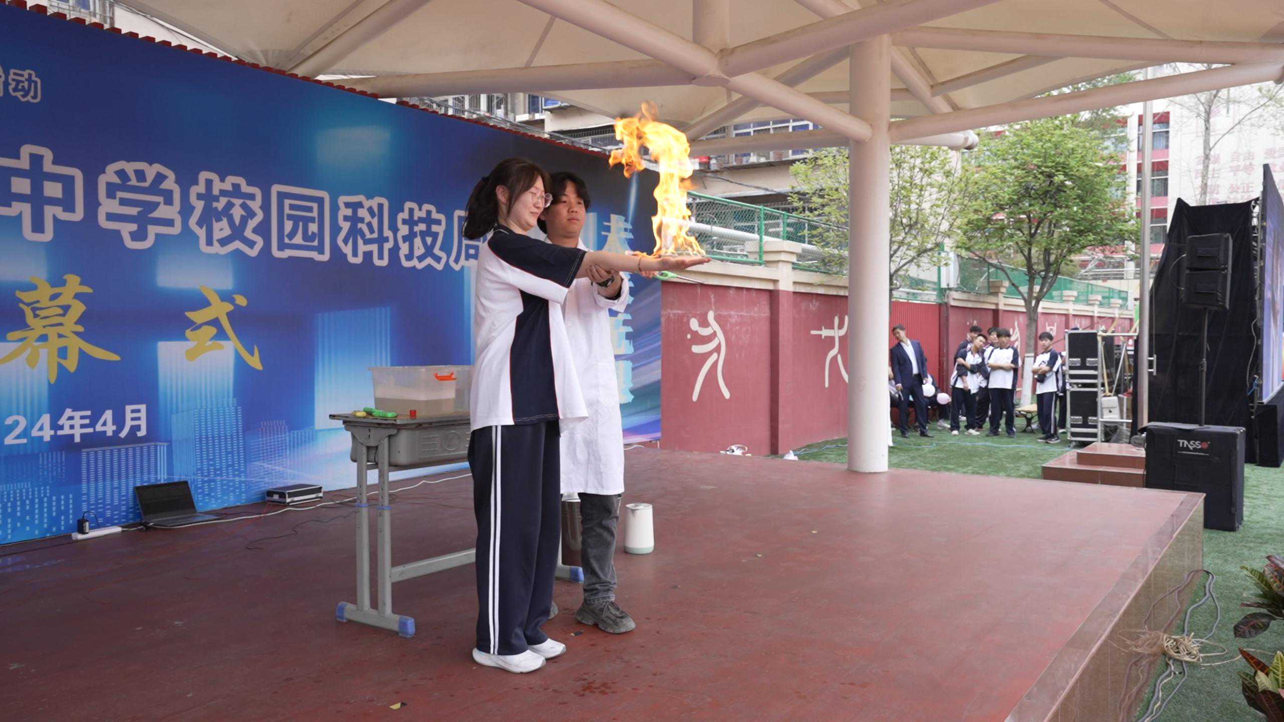 手掌燃起烈焰,手却安然无恙,“火焰掌”是怎样形成的?在开幕式科学实验秀上,“火焰掌”、“激光枪”、“电流音符”等别开生面的科学实验以及精彩的机器人表演接连上演,让同学们更直观全面地感受到了科学的魅力和科技的力量。“太精彩了,每一个科学小实验背后都蕴藏着大智慧。今后,我要更加努力学习,在校园里面多多参与科技实践活动,成为一名拥有丰富科学知识的人。”在现场体验互动科学实验后,高一一班的赵宇涵同学兴奋地说。