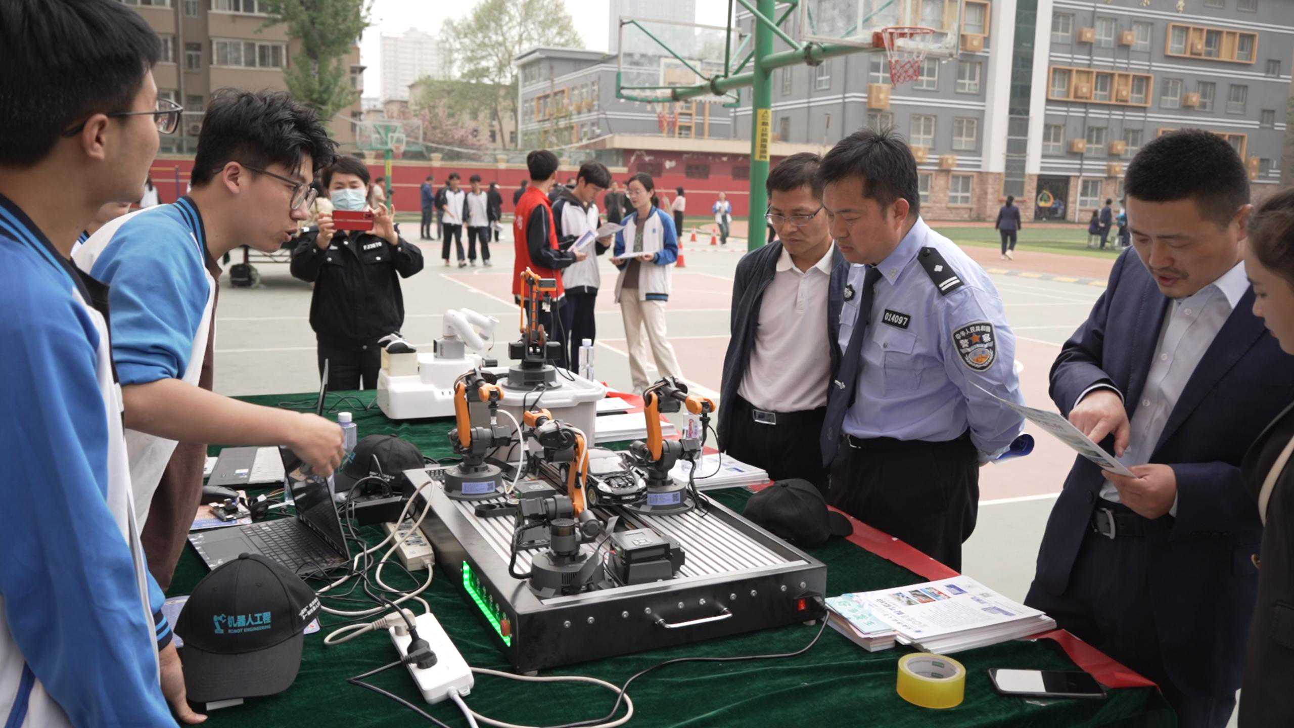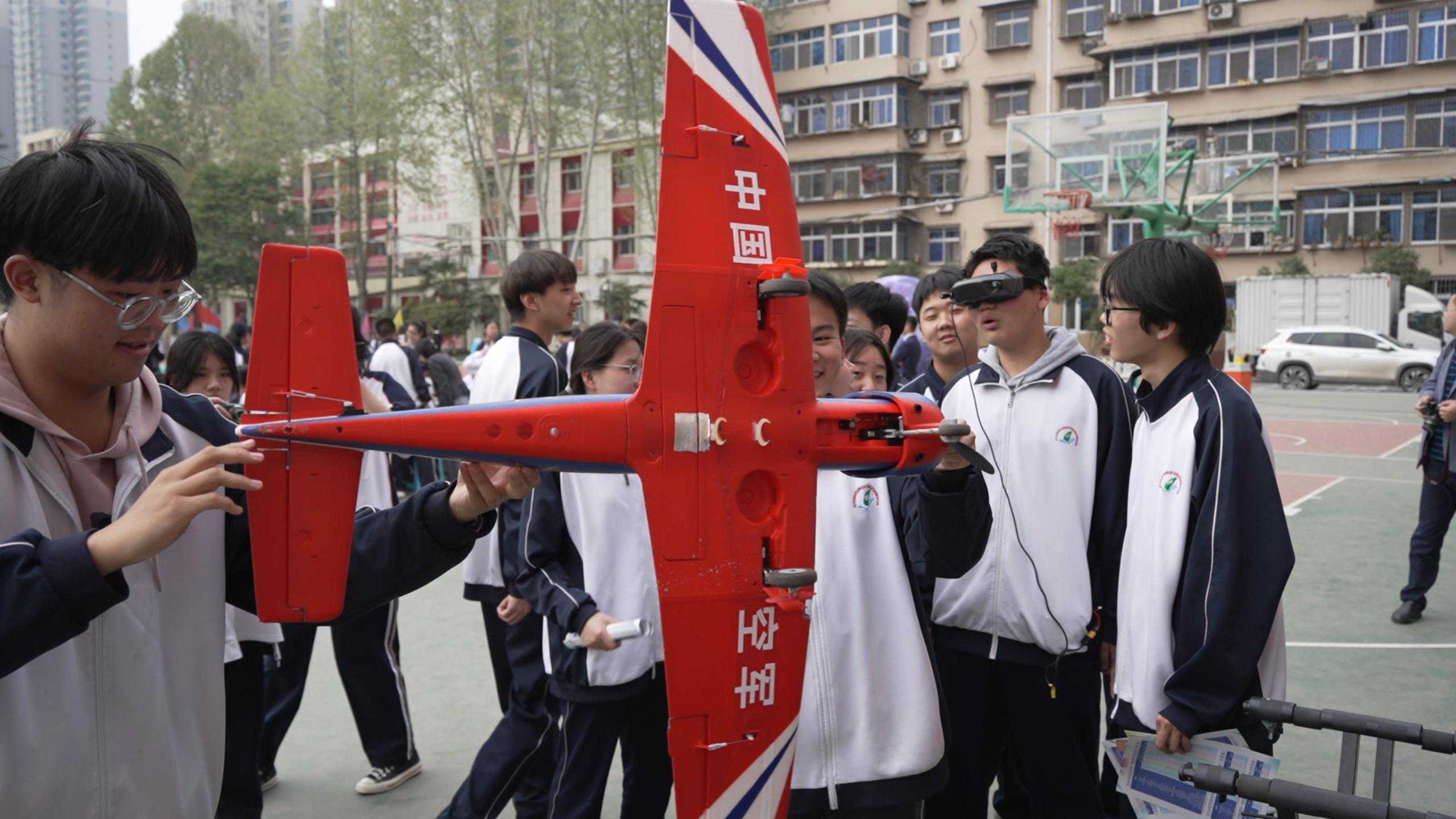 试驾无人机、体验现代兵器、理化生科普实验······操场上,来自学校各个科学特色社团和多所大学的科技展示吸引现场嘉宾和师生驻足观看、互动体验。石洪嘉是学校物理社团的成员,今天他和同学们为大家展示的是大楼阻尼器实验,通过大楼震动产生的机械能转化为小球摆动的机械能来抵消楼体的摆动。石洪嘉说,通过物理社团的学习,不仅要学到了科学知识,还通过实验加深了对科学原理和方法的理解。今后他要努力学习物理知识,培养自己的科学思维和创新能力。