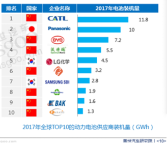 众所周知,中国本土动力电池的头部企业已具备与日韩巨头竞争的实力。2017年全球动力电池销量前十企业中,虽然中日韩三分天下,但中国有七家企业入围。