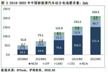 根据盖世汽车研究院统计,2018年,中国动力电池装机量为57.35GWh,同比增长57.0%。另外,根据伊维智库等的预测,未来三年,中国动力电池的需求量将高达210.3GWh。