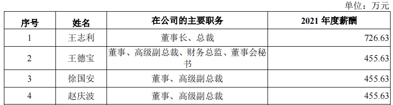 《招股书》显示,实际控制人王志利能够直接或间接控制公司100%股份对应的表决权。这在A股市场上十分少见,《招股书》显示,2021年王志利的年薪为726.63万元。