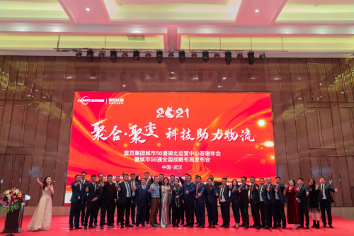 承继辉煌辞旧岁,锐意进取谱新篇!2021年1月10日晚,以“聚合·聚变——科技助力物流”为主题的蓝页集团城市56通湖北运营中心答谢年会暨城市56通全国战略布局新闻发布会在武汉隆重举行!