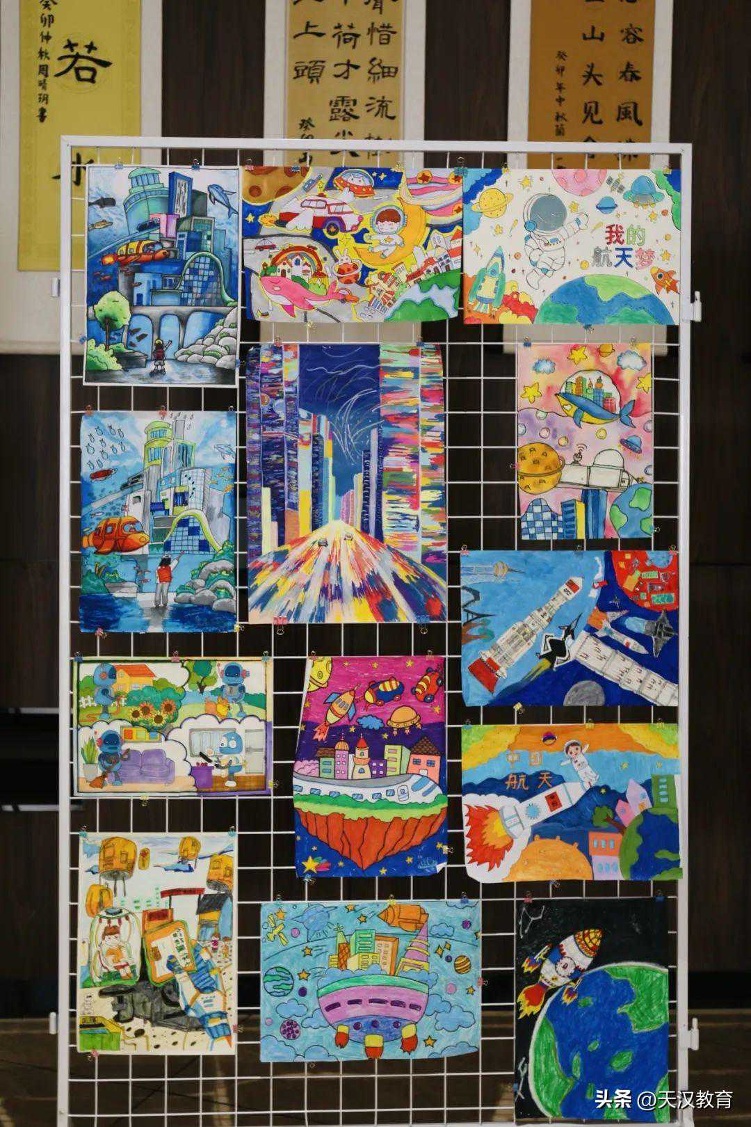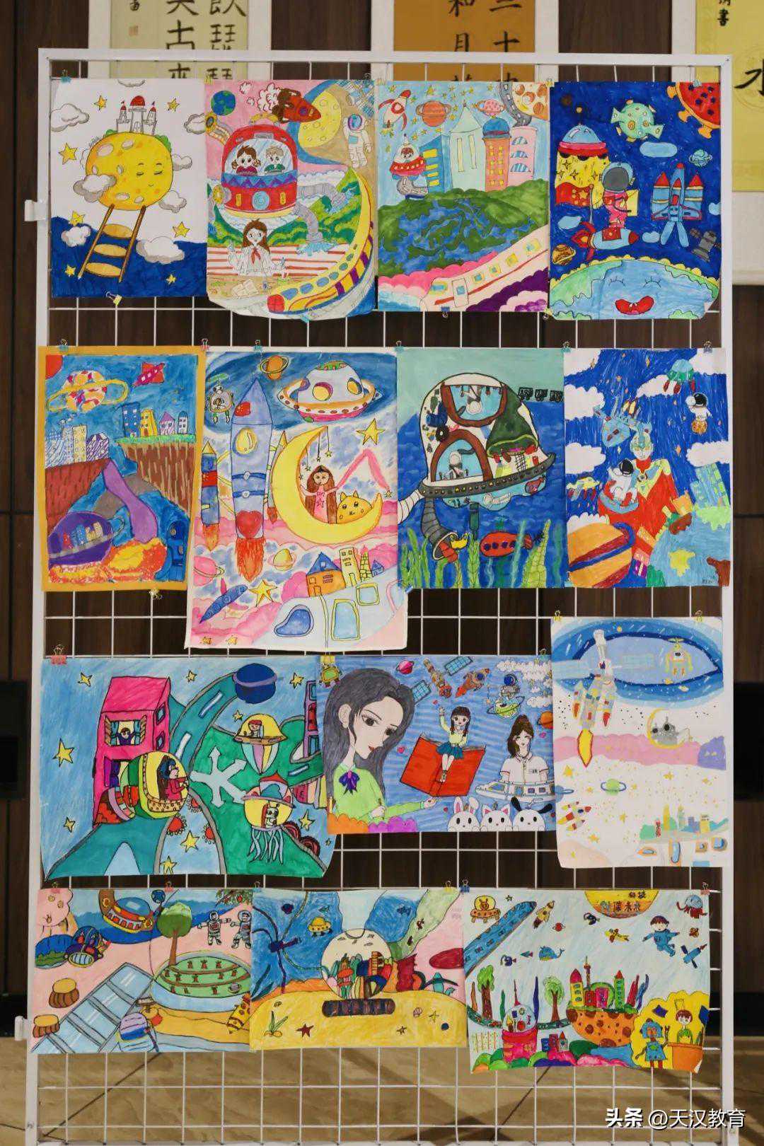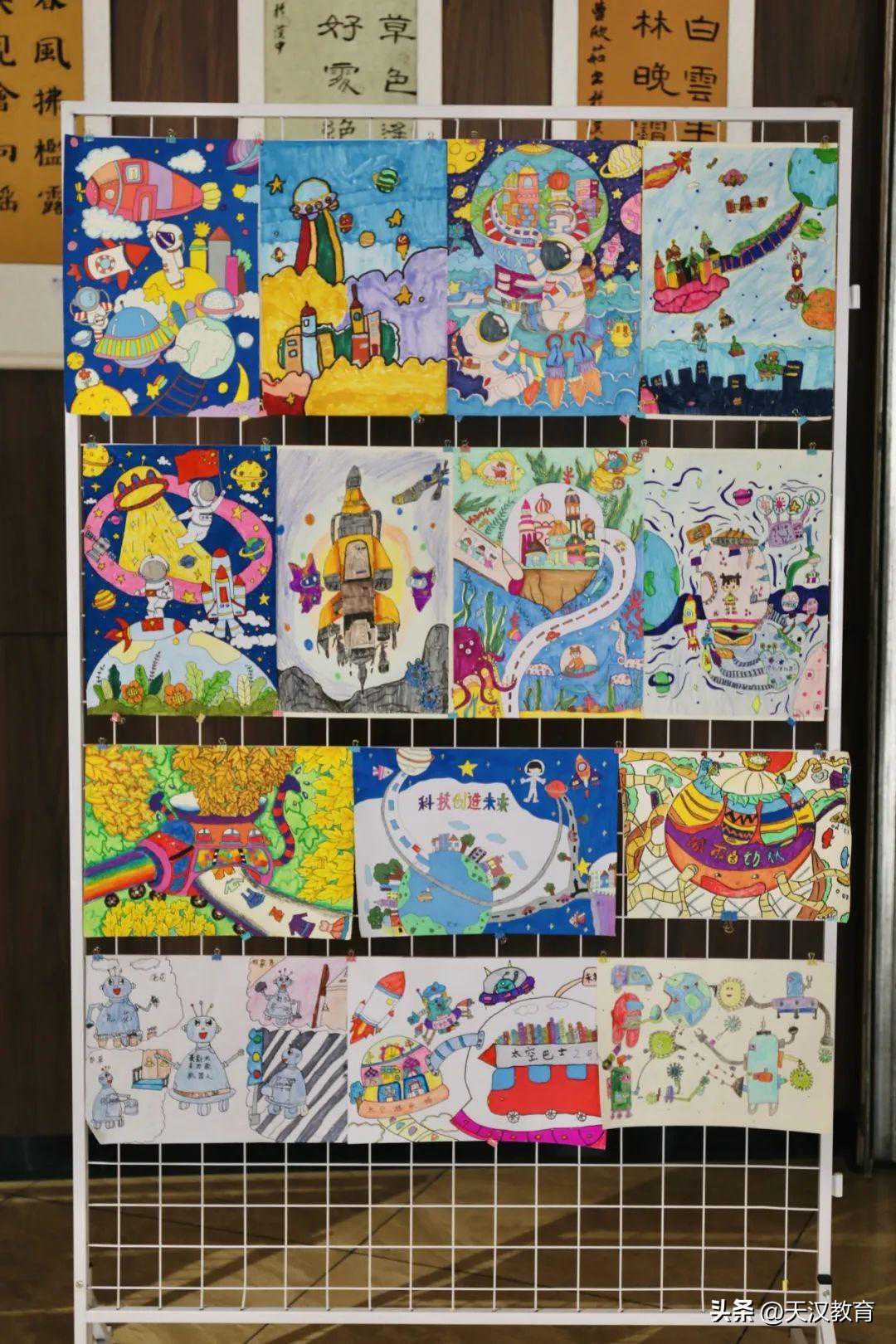 活动结束后,孩子们纷纷前往科幻画、科技作品展区进行参观学习。