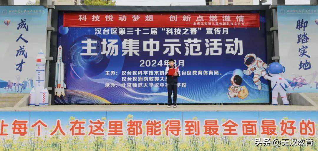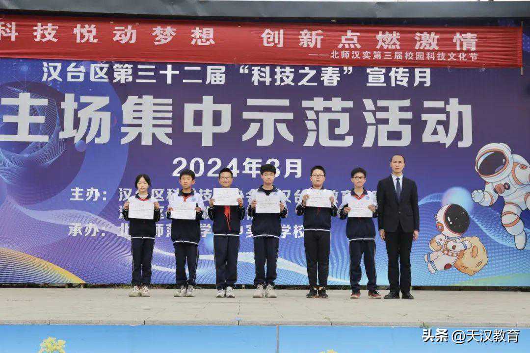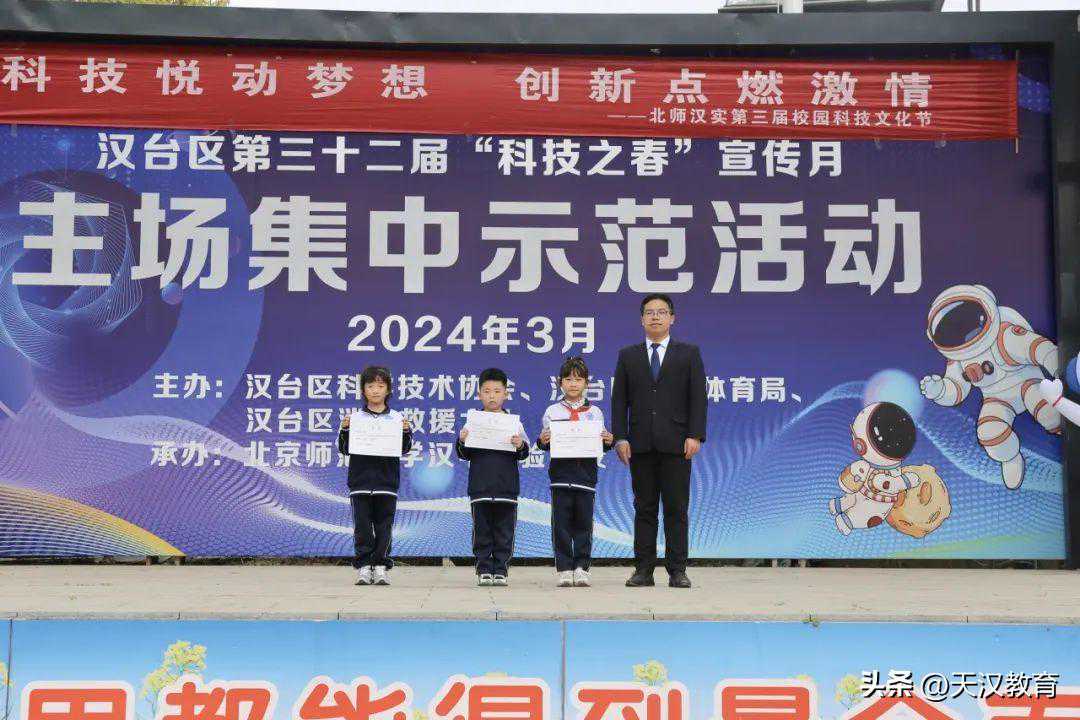4月3日,在北师汉实的操场上,我校第三届校园科技文化节落下帷幕。本届校园科技文化节在全校师生的共同努力下取得圆满成功。从3月14日至4月3日,我校围绕“科技悦动梦想,创新点燃激情”主题,通过丰富多彩的活动,让学生更深入地了解科技,激发兴趣,培养创新精神。