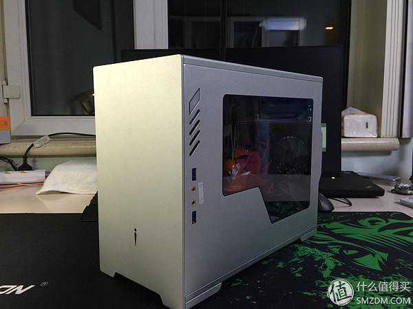 装ITX关键就是选机箱了。UMX1plus虽然不错,还是决定换换口味。其实是因为UMX1plus的走线装起来实在太痛苦了,散热设计得确实也不能让人满意。而且这回我的机箱需要放在桌面左手边,还想尝试一下侧透光污染,UMX1plus左侧透也不合适。右侧透的箱子确实不多,找来找去,最后看上了这货: