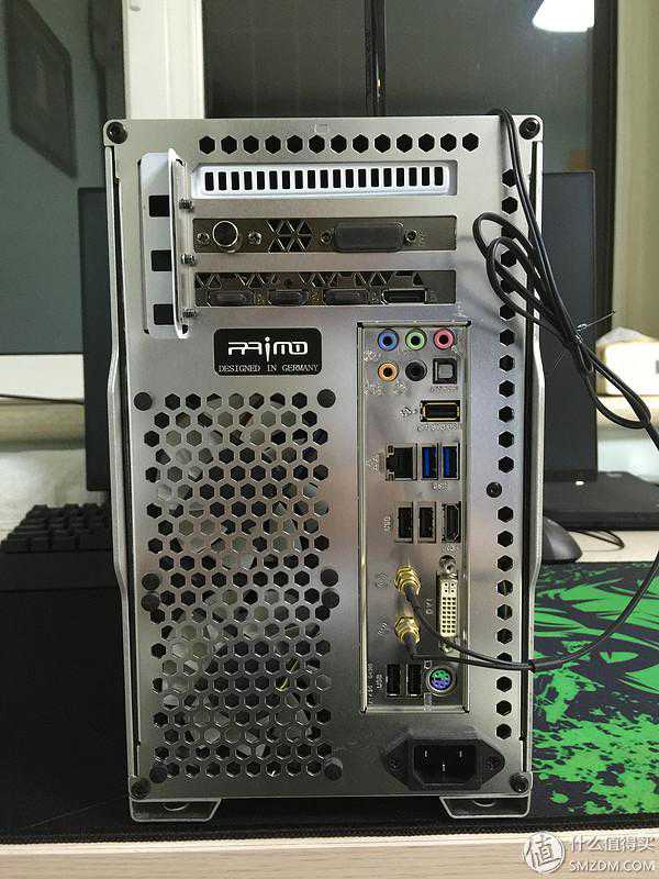 菊花。菊花布满了蜂窝状的散热孔看起来还是非常不错的(谁会天天去看菊花呢)。中间那块黑色的铭牌质感不错,就是德国设计不知道是什么鬼?还有,号称全铝机箱,pci挡板你给我来几片白色的薄铁皮啥意思?细节啊细节。。。其实整个箱子的用料做工缝隙都是不错的,就是这个地方实在让人吐槽: