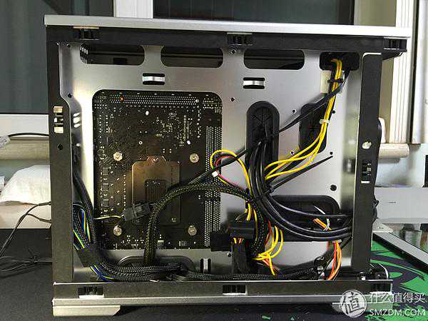 转到左边看一看。这个箱子是可以走背线的,可以看到设计了不少的背线孔,主板背面也有大开孔方便拆装散热器,所以这个箱子装机走线还是蛮舒服的。因为是非模组线,而且扔背面也看不见,简单整理一下就这么着吧: