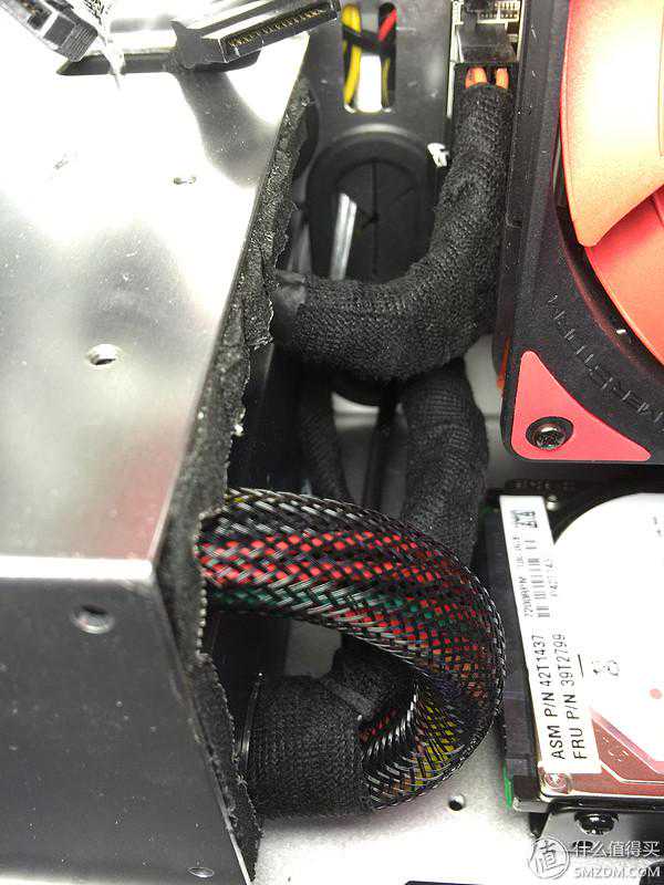 一个噪音源是HDD硬盘导致的机箱共振,所以我把2.5寸HDD移到了机箱地板上并在后面用隔热棉垫住,有一定效果,虽不能完全消除但还算是减弱不少。