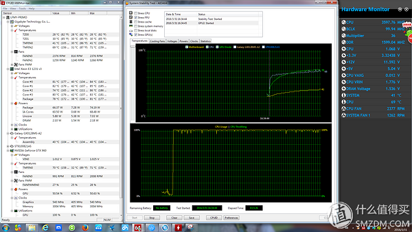 满载15分钟后的温度。得益于三个机箱风扇,机箱热风能很快排出,系统温度最高41度;CPU温度被控制在69度(cpupackage温度81度什么鬼?);显卡温度71度。总体散热目前可以接受,等夏天再看看吧。