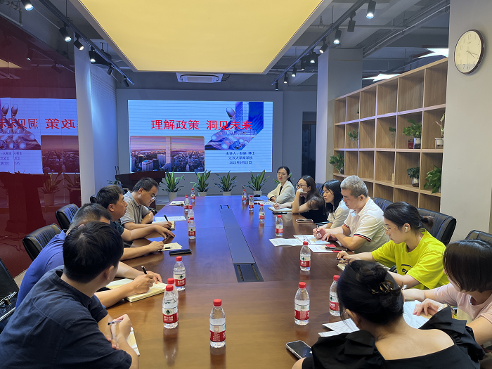 随后,武汉市科技创新服务中心在大智无界空中小镇创意产业园举行了创新人才培训进企业系列活动,园区内10余家企业及重点企业的科技工作者参加了培训。此次培训由创服中心科技志愿者江汉大学彭颖博士讲述“理解政策洞见未来”科技创新课程。从科技政策、财税政策、融资渠道等方面为现场企业带去满满的政策干货。