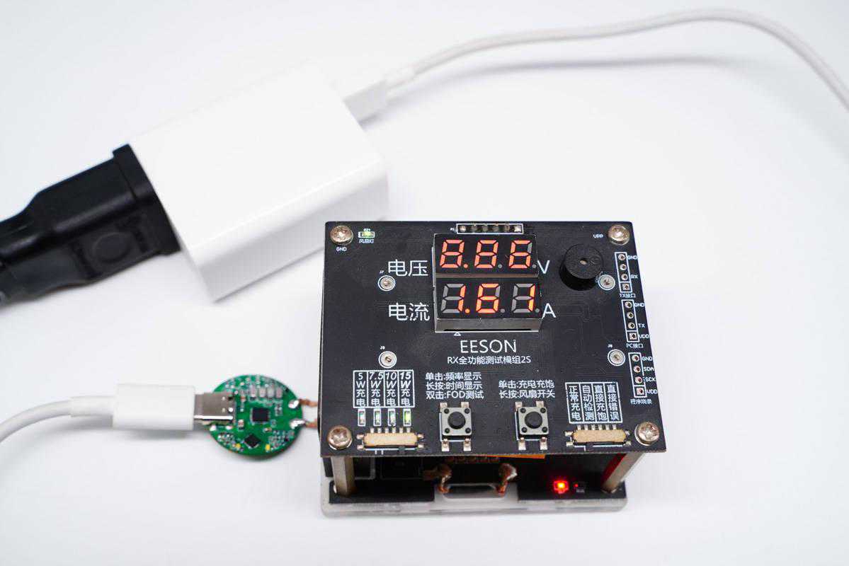 苹果20WPD快充充电器采用赛普拉斯CCG2协议芯片,使用该充电器供电,智融SW5001无线充方案可以正常识别输入协议,并测得支持15W无线快充输出。