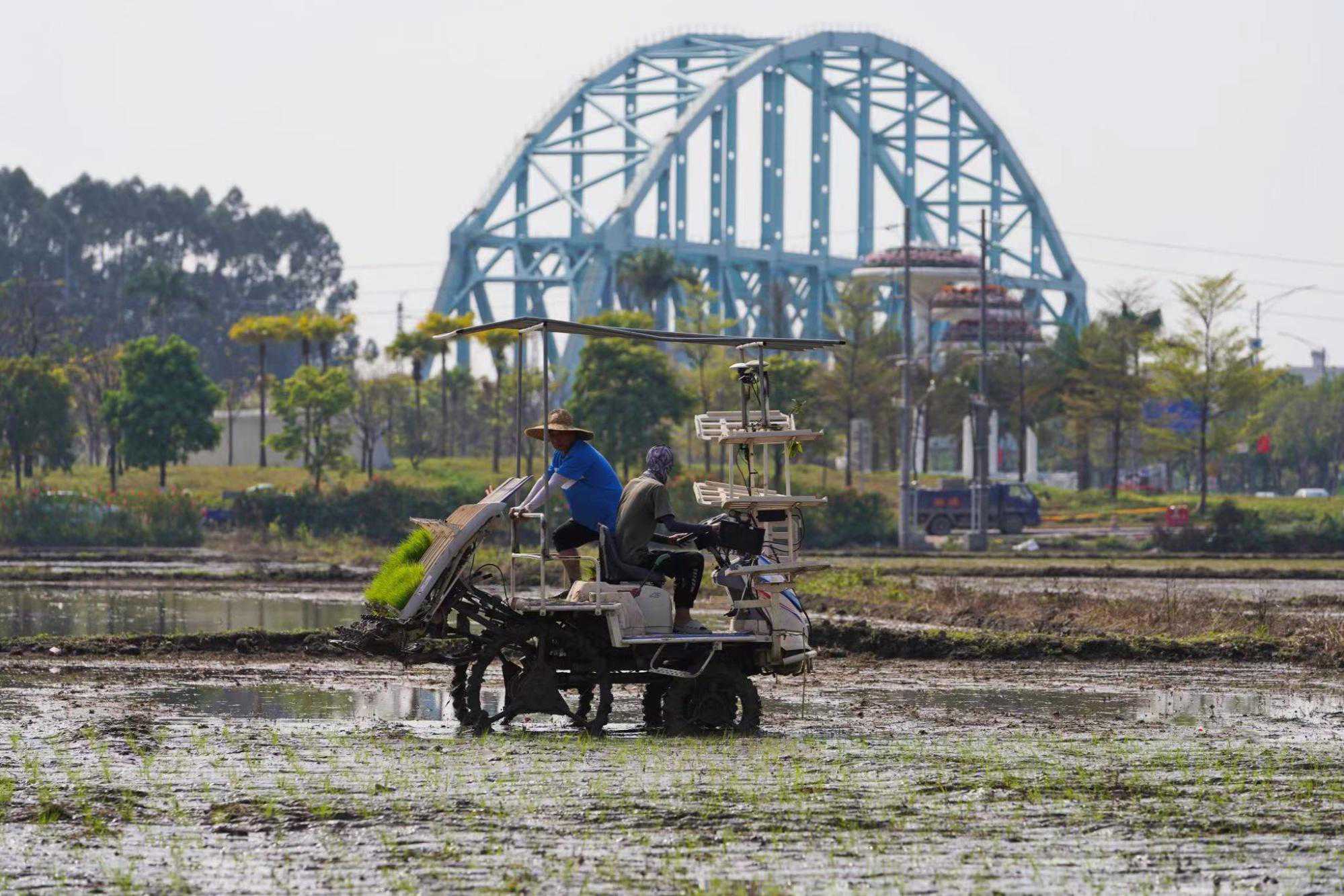 插秧机开启早稻插秧模式(央广网记者官文清摄)