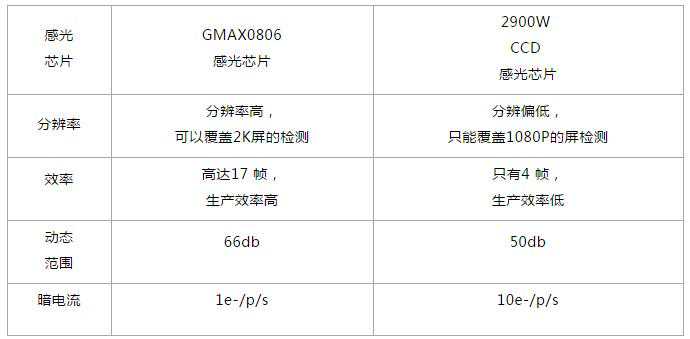 此时,度申科技的攻城狮注意到了中国长春长光辰芯公司发布的GMAX0806芯片。并且与市面上大量使用的2900WCCD进行了对比分析。经过分析,我们初步认为中国公司原创的GMAX0806芯片比国外的2900万CCD感光芯片更适合这一市场需求。