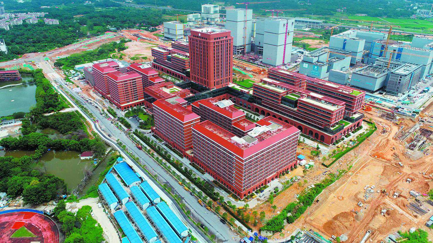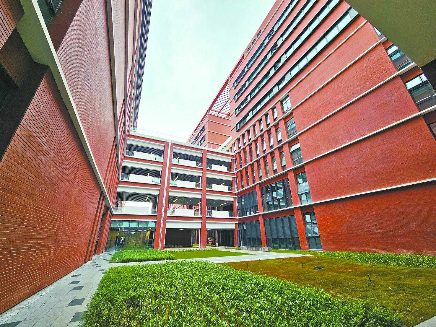 岭南红墙,连廊相通,在建的西安电子科技大学广州研究院(以下简称“西电广研院”)体现了融入粤港澳大湾区的建筑风格。