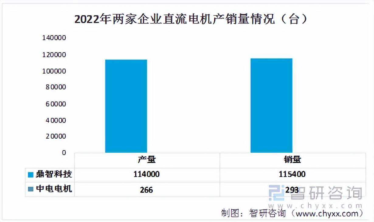 从2022年两家企业的直流电机产销量情况来看,鼎智科技的直流电机产量为114,000台,销量为115,400台。中电电机的直流电机产量为266台,销量为293台。