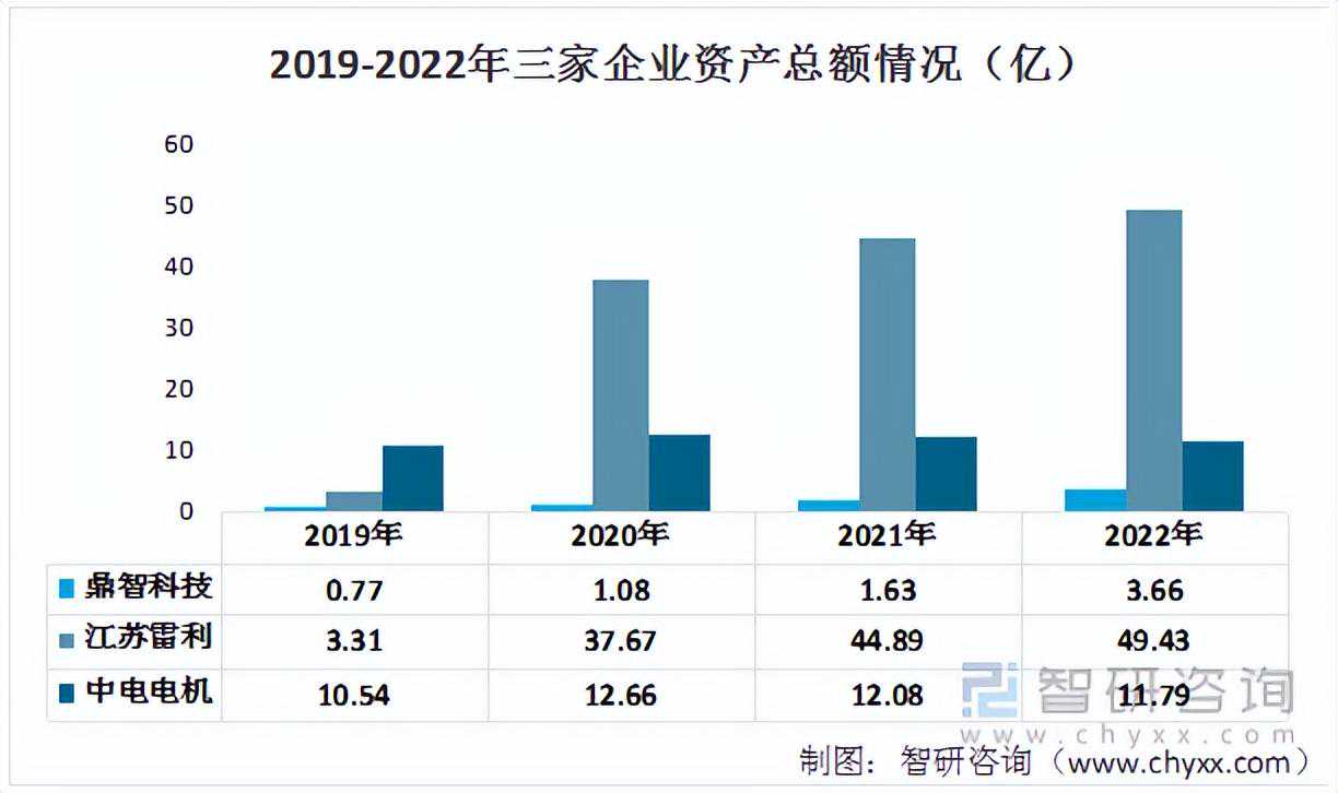 从近年来三家企业的资产总额情况来看,整体呈现上升的态势。截止2022年鼎智科技、江苏雷利和中电电机的资产总额分别为3.66亿、49.43亿和11.79亿。