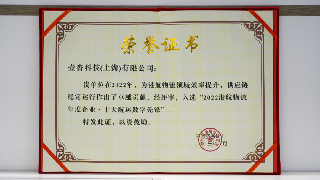 壹沓科技获得2022港航物流年度企业·十大航运数字先锋
