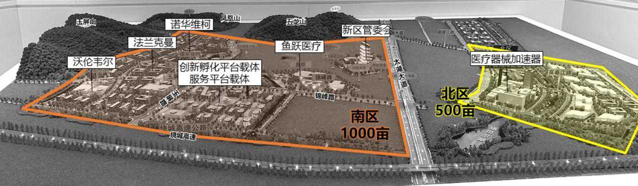 北区为医疗器械加速器、产业化示范区,占地约500亩。先期建设标准研发生产用房4万平方米,近期总建筑面积约28万平米的加速园开园,包括1栋21层研发办公楼、8栋医疗器械标准厂房和1栋服务配套设施,将汇集高端器械研发生产、第三方服务、企业区域总部、产品展示、商务等功能产业。
