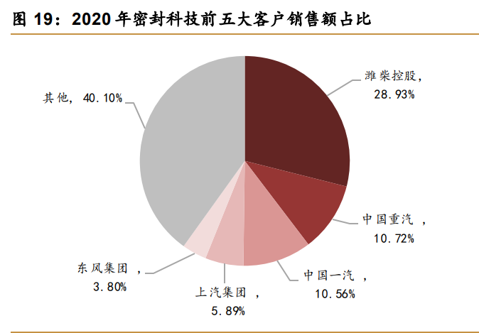 公司客户群体覆盖面广。我国柴油发动机生产厂商集中度高,按销量计,2019年国内前十大柴油发动机主机厂潍柴动力、广西玉柴、云内动力等市场占有率达到76.64%。公司下游主要客户以主机厂客户为主,客户群已覆盖超过80%的国内柴油机主机厂,涵盖了潍柴控股、中国一汽、中国重汽、上汽集团、广西玉柴等大型发动机制造厂商旗下主流品牌。此外,2019年度,公司取得康明斯全球供应商资质,不断拓展海外市场。