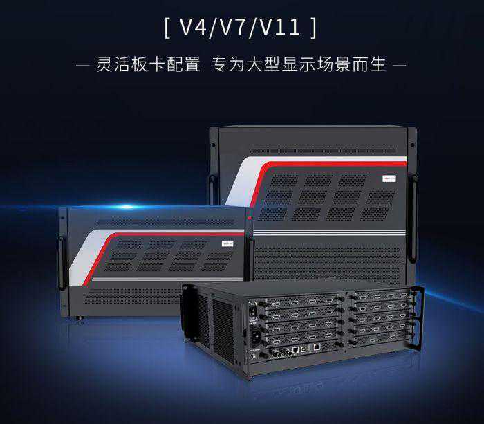 V系列采用灵活板卡配置,适用于LED/LCD/DLP等多种类型显示屏,在超高清4K显示的同时集合了多图层显示、窗口漫游、自由拼接、底图显示等多种功能,多重备份、预监回显等功能更是为现场运维提供保障。