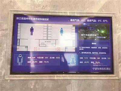 昨日13时许,乘客张女士从乐清站出站后,便立刻奔向了出站口的厕所。“哇,这个厕所高大上,门口便有电子屏,显示目前厕所内有多少厕位是空着的,处于哪个位置,并显示了厕所内的温度和湿度。”张女士说,通常公共场所的女厕人多时都要排队,而男厕空空如也,电子屏上显示的女厕厕位的数量是男厕的一倍,这非常人性化。