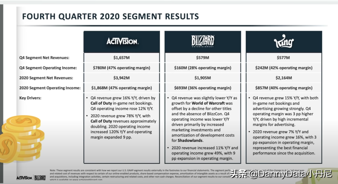 他现在的动视收入主要是靠CallofDuty使命召唤,暴雪就是还是他这些传统的魔兽世界,然后还有就King,就刚才说的那个CandyCrush。