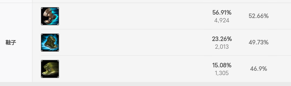鞋子:如果比较顺不容易被秒,可以考虑出法穿鞋来增加自身技能的伤害,如果发育的不是太好,那么建议出水银鞋和布甲鞋来增强坦度,来保证自身生命安全。