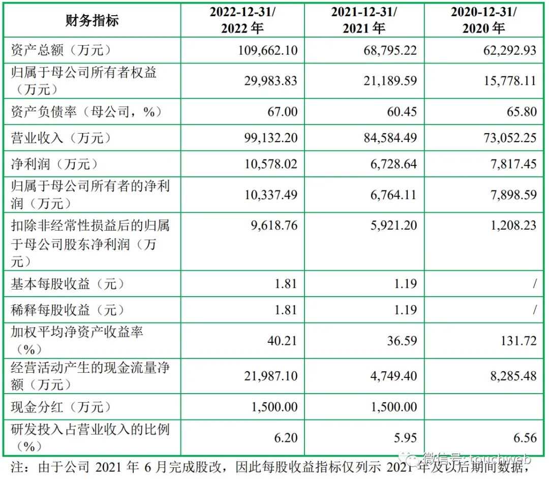 招股书显示,森峰激光2020年、2021年、2022年营收分别为7.3亿元、8.46亿元、9.91亿元;净利分别为7817.45万元、6728.6万元、1.06亿元;扣非后净利分别为1208万元、5921.2万元、9618.76万元。