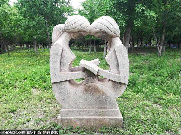除动物造型外,还有一座雕塑造型十分奇特优美,是两位正在埋头读书的姑娘,透过雕塑的间隙看到她们专注的侧影,组成一幅美丽的画卷~
