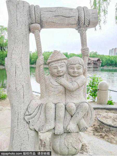 湖中央还有一座漂亮的水榭半岛,夕阳下显得特别美丽。漫步其中,岸边垂柳间的石雕动物,烘托着周边环境的氛围,映衬着秀丽的湖畔风光,成为仰山公园的一大亮点~