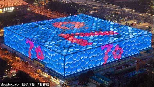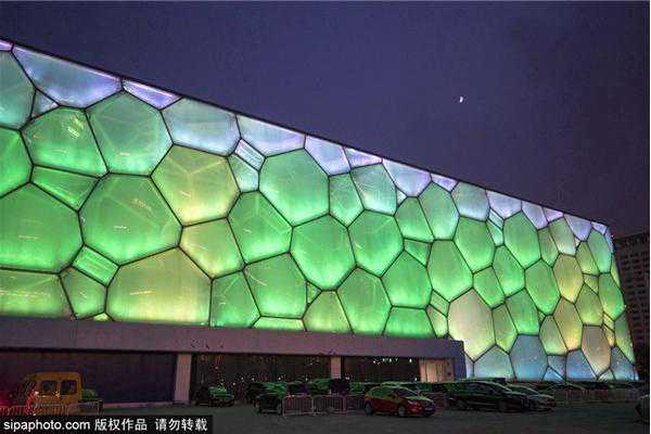 水立方的夜景是一道亮丽的风景线,不少人夜晚前来打卡!