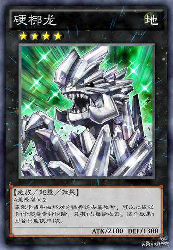 地卡——硬梆龙(4星/阶)拥有战斗破坏对方怪兽送去墓地时追加1次攻击的效果。硬梆龙虽然是漫画《游戏王zexal》单行本第1卷的附送卡,但不是漫画原创卡,直到漫画第4卷中亮相。