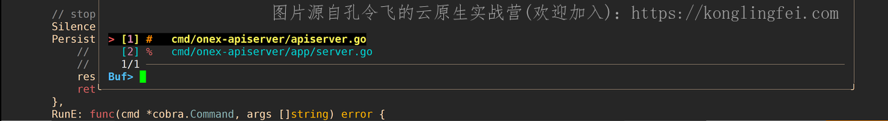 我们可以使用fzf提供的:Buffers指令,来查看当前打开的缓冲区。例如,键入leader+j来查看当前打开的缓冲区: