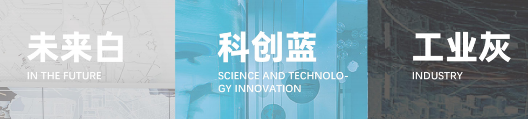 整个展厅的色彩布局,我们提取了未来白、科创蓝、工业灰这样比较后现代工业风格的色彩元素,和至誉科技的企业生命形态比较吻合。