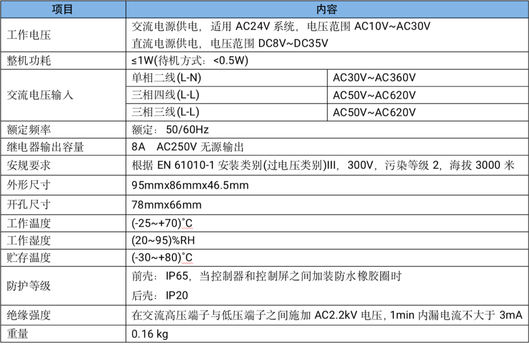 ——具有过压、欠压、过频、欠频、缺相、逆相检测功能,过压/欠压阈值、过频/欠频阈值可设;