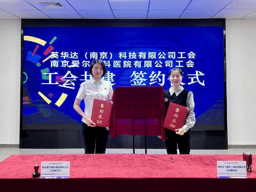 本着“资源整合、优势互补、共建共享”的原则,英华达(南京)科技有限公司工会与南京爱尔眼科医院工会进行了工会共建签约及项目揭牌仪式。