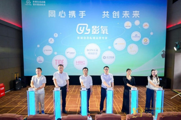 随后,影氧生态战略签约启动仪式隆重举行,多家影城代表与李峰先生一同上台,共同开启“影氧”合作的新篇章,同时期待更多影城伙伴加入到影氧的生态中。