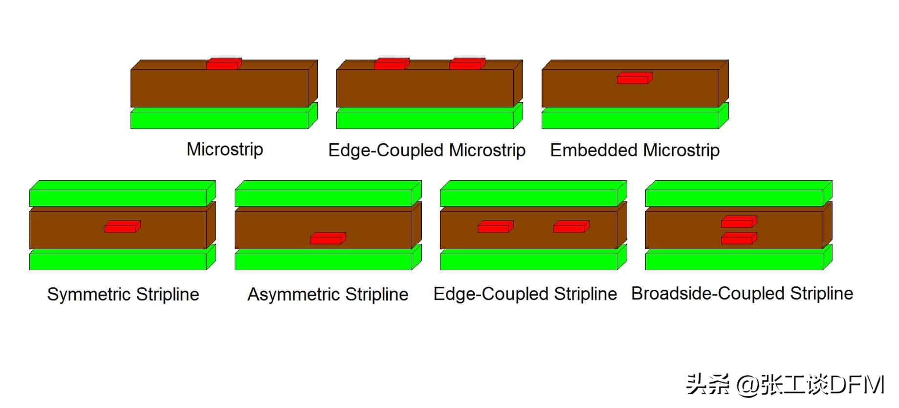 高速设计通常需要微带或带状线层配置来路由敏感传输线。虽然微带线配置在外部层上布线,但带状线配置需要内部布线层和接地层,这只能通过多层设计实现。你可以在下图中看到这些PCB层配置的一些示例。