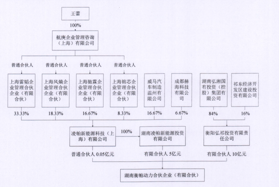 衡帕动力背后,威马汽车身影隐藏其中。工商信息显示,衡帕动力成立于2019年7月30日,注册资本1200万元,执行事物合伙人为凌帕新能源科技(上海)有限公司(上海凌帕)。穿透之后,王蕾通过控制4家公司合计持有上海凌帕76.66%股权,为衡帕动力实控人。