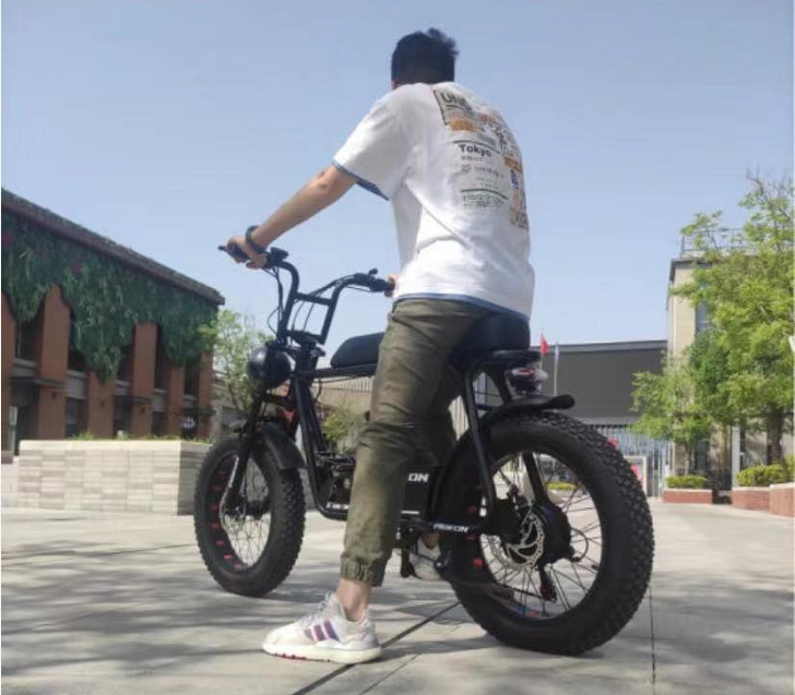 区别前面2款电动车,这款车是电动车的细分类,属于新国标电动车,而它的造型更是复古电单车,虽然大家对于它的颜值是各有喜好,但它拥有20×4.0的AT全地形轮胎,大颗粒排水胎纹,还让它的外观很“与众不同”。