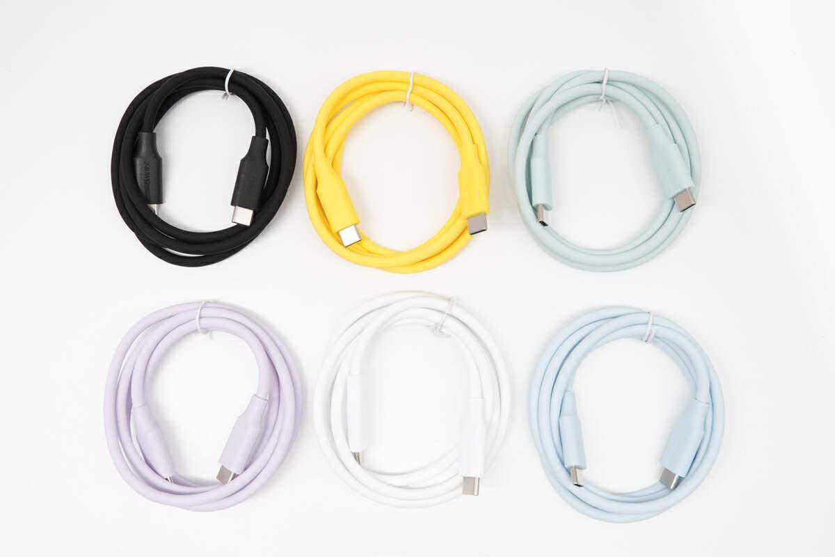 同轴科技240WUSB4数据线采用多彩配色设计,拥有黄、紫、青、白、蓝、黑等六类款式。